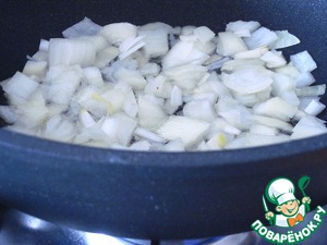Лук слегка пережарить в сковороде с толстым дном.