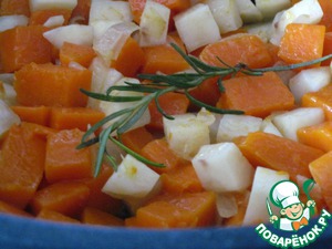 Подавать суп к столу, посыпав сверху кусочками обжаренных яблок. Украсить веточкой розмарина. Приятного аппетита!