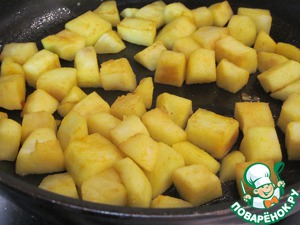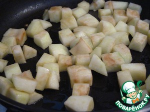 Яблоки очистить, нарезать на кубики, выложить в сковороду с маслом.
