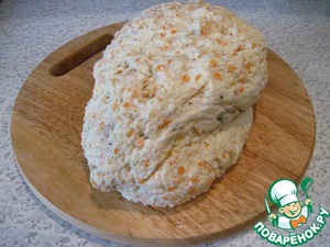 Разделочную доску смазать маслом, выложить тесто и месить его в течении 30 сек. Накрыть салфеткой и оставить на 15 минут.