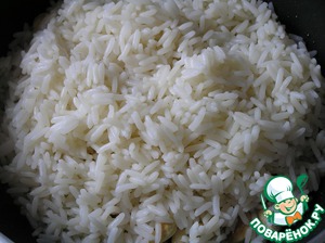 Всыпать отваренный рис, перемешать.