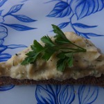 С этим паштетом хорошо сочетаются салаты из свежих и солёных овощей, а можно подать так, очень вкусно! А еще это отличная начинка для пирожков! |