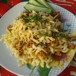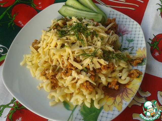 Пока готовился фарш отварила в немного подсоленной воде макароны. Не стоит их сильно солить, так как фарш "поделится" с ними совими специями.