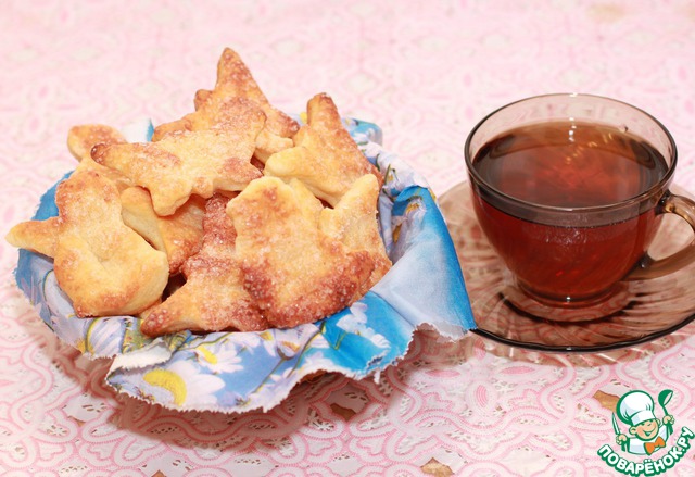 Мягкое и нежное творожное печенье, обсыпанное сахаром. Очень быстро готовится, эффектно выглядит, приятное на вкус. Очень быстро употребляется с чаем, с компотом, с морсом, с соком. Великолепный вариант для детей на полдник.