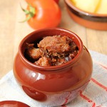 Томатную смесь добавляем в мясо, кладем корицу, приправляем солью и перцем, накрываем крышкой и тушим на малом огне около часа. Если не будет хватать жидкости добавите кипяченой воды.