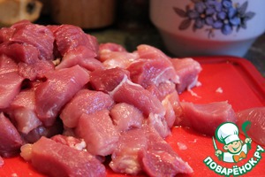 Мясо ополоснуть в холодной воде, нарезать на небольшие кусочки.