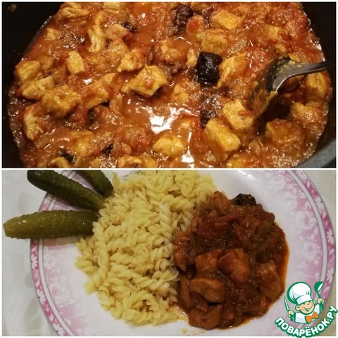 Свинина тушеная с черносливом, луком и томатами. Просто тает во рту!