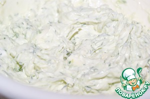 Смешать сливочный сыр, йогурт, натёртые на тёрке огурцы, чеснок пропущенный через пресс и укроп, взбить и слегка подсолить, при желании можно добавить немного паприки. Охладить. -