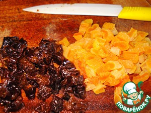 Курагу и чернослив нарежем кусочками. Отставим в сторону.