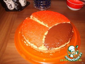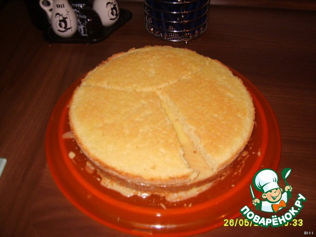 Поставить форму с тестом в предварительно нагретую до 170°С духовку на 30-40 минут. Проверить пропечённость коржа деревянной палочкой.
