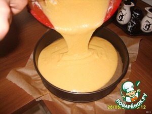 Вылить тесто в застеленную пергаментной бумагой форму.