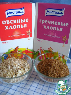 А также овсяные хлопья 25г и 25г хлопьев гречневых. Всё слегка перемешать.