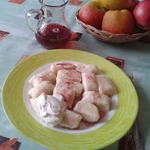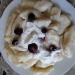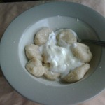 В кипящую воду бросаем вареники (не обожгитесь!) и варим 3-4 минуты на среднем огне. Можно аккуратно перемешать через 2 минуты ложкой. Выключаем. Вареники всплыли - они сдаются! Достаем их шумовкой на тарелки и идем завтракать.