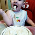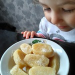 Голенький Максимка проспал скатывание колбасок, но нарезку он не упустит (хотя глаза еще полузакрыты, но руки чётко по мышечной памяти делают свое дело).