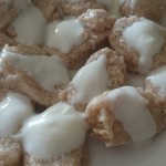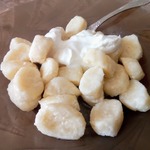 Никогда не делаю ленивые вареники с яйцами. Посудите сами: творог содержит белок казеин (из которого клей делают), мука - вязкую тягучую клейковину. И мы еще добавим туда яйца, белок которых еще древние египтяне использовали как клей при строительстве пирамид? Каково будет нашему, а тем более детскому пищеварению? Тем не менее, дети очень любят завтракать варениками, поэтому сделаем наше блюдо если уж не полезным, то хотя бы не очень вредным. Тем более, что делаются они за 30 минут!