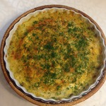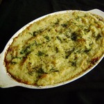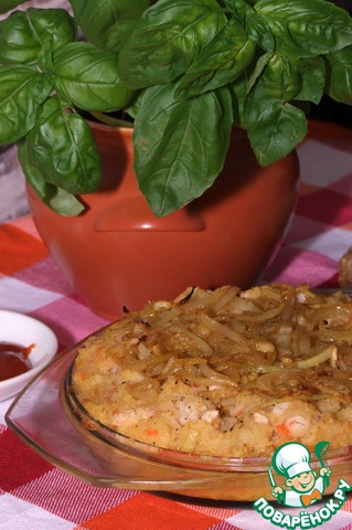 В смазанную форму выложить слой картошки с фасолью, затем слой лука