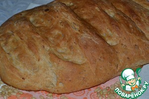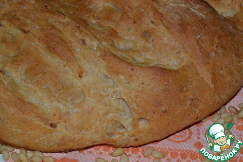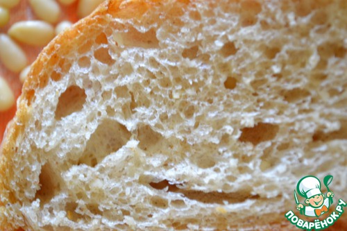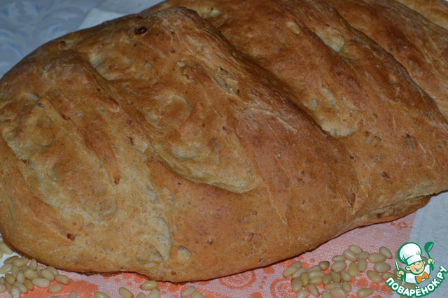 Ну что можно сказать об этом батоне: очень вкусный, с приятным ароматом кедровых орешков, мякишек воздушный, легкий, корочка ароматная, хрустящая! У меня получился очень огромный батон, я бы даже сказала - батонище. Поэтому смело можно из этого количества теста делать 2 батона.