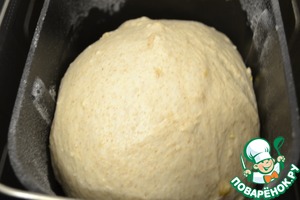 После сигнала хлебопечки наше тесто хорошо обминаем, выкладываем в смазанную маслом чашку, накрываем пленкой и убираем на 40-50 мин в теплое место.