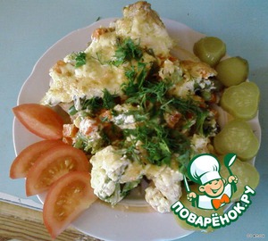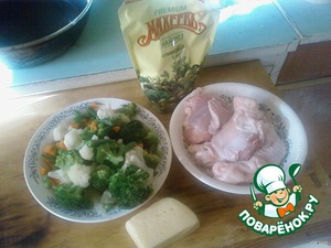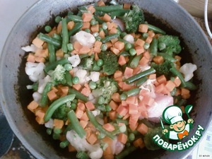 - Овощи (замороженные;у меня были цветная капуста, брокколи, морковь, фасоль стручковая, зеленый горошек) — 400 г