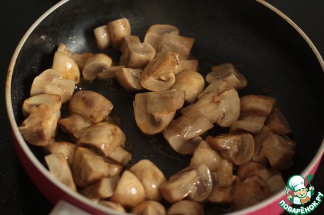 • Затем грибы обжарить на горячей сковороде до золотистого цвета.