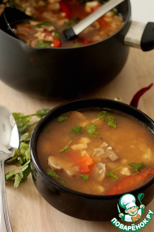 Очень вкусно, я без отсебятины не могу добавила сушеные нори и вместо шампиньонов опята, убрала кинзу. Очень достойно получилось спасибо Вам за рецепт