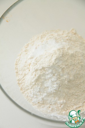 В глубокую миску высыпаем муку, разрыхлитель и соду.