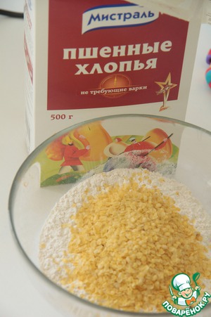 Добавляем пшенные хлопья. Они сделают пирог более плотным и ароматным.