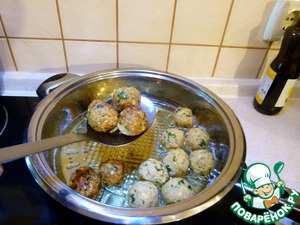 В разогретое масло выкладывать шарики и обжаривать с двух сторон до золотистого цвета. Вынимать шумовкой.