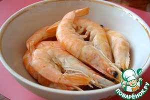 • Отваренные креветки охлаждаем и чистим. Складываем основные ингредиенты на тарелочку.