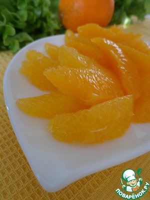 [+5]Отличное сочетание ингредиентов. Получилось сочное, яркое, очень гармоничное блюдо!Апельсин замечательно вписался и это для меня необычное новое сочетание ингредиентов. Вместо оливкового масла использовано масло из тыквенных семечек.