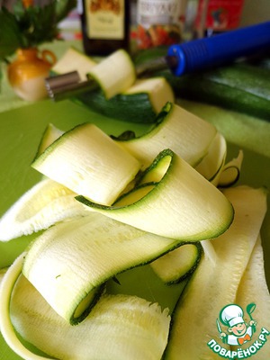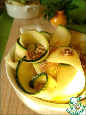 Лёгкий и быстрый в приготовлении салат порадует любителей кабачков. Подходит в качестве гарнира к рыбе, курице и как самостоятельное блюдо вполне хорош.