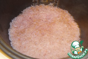 Рис тоже нужно растолочь толкушкой, как можно лучше. Положить в рис 4 ст. л. сахара Честно говоря, японцы вообще бьют этот рис специальным молотком, чтобы получилось тягучее тесто. Я видела один раз на улице. Зрелище ещё то, интересно наблюдать со стороны. Ну а мы постараемся просто нашим старым испытанным способом максимально растереть.
