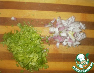 Лук и зелень мелко нарезаем.