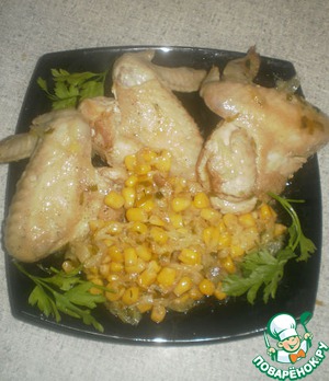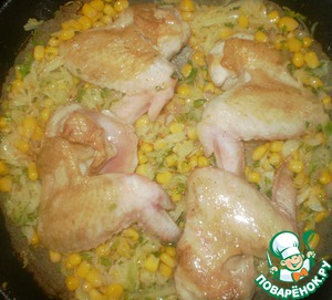 Рецепт «Куриные крылышки с тушеной капустой и кукурузой»: