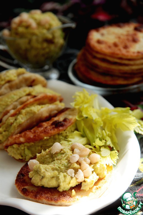 На лепешки выкладываем гуакамоле и закрываем их - это один из вариантов подачи. |