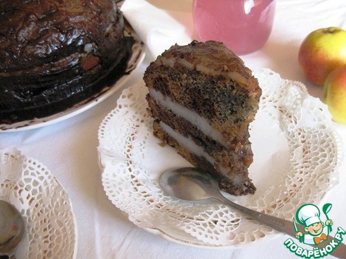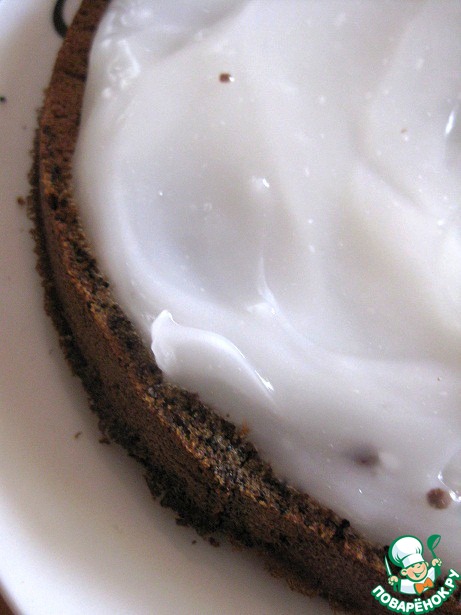 Сварить глазурь. Для этого смешать 2 ст. л. какао, мед 1 ст. л, сахар 2 ст. л., воду 3 ст. л. Довести до кипения эту массу и немного охладить, полить готовый торт.