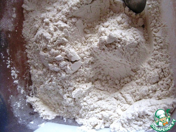Всыпать в медовую массу муку, просеянную с разрыхлителем частями.