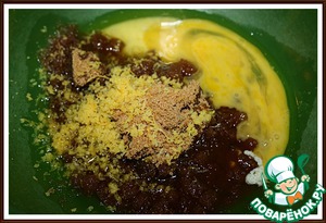 2. Масло растопить и дать остыть 10 минут. Соединить масло, сахар, цедру, яйцо и перемешать.
