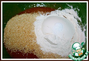 3. Добавить кунжут, муку и разрыхлитель.