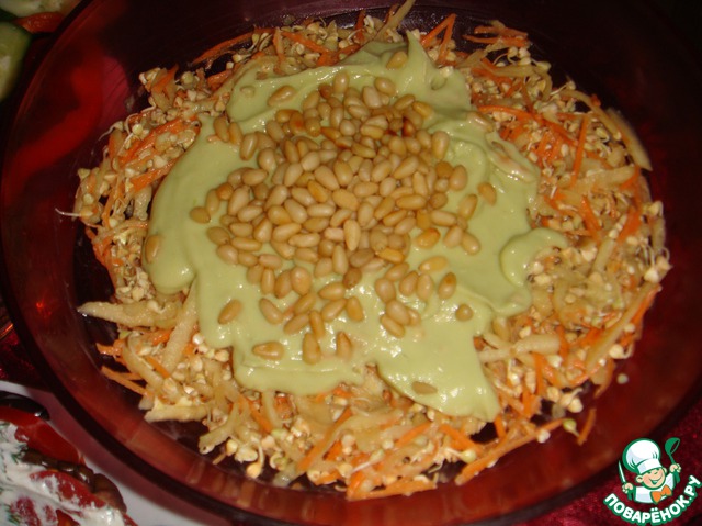 Рецепт «Салат с ростками зеленой гречки под соусом из авокадо от Jesona Vale»: