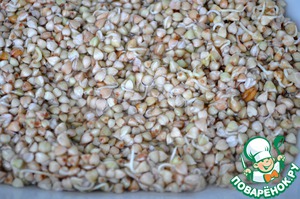 Гречку залила водой. Крупу надо залить водой. Первую воду крупа впитывает быстро, воду добавить и потом промывать крупу через каждые 6 часов.