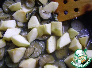К цуккини добавить яблоки, дробленый пастернак, посолить и еще немного потушить.