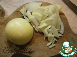 Лук чистим и режем полукольцами. Обжариваем на растительном масле до золотистого цвета.