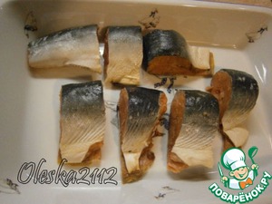 Далее я готовлю рыбу в духовом шкафу. Потому беру жаропрочную форму и выкладываю кусочки рыбы.
