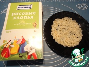 В это время в кофемолке немного измельчаем рисовые хлопья, не до состояния муки.