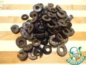 1/4 часть маслин откладываем в сторону, остальную часть добавляем к тесту.