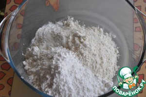 Смешиваем муку, сахарную пудру, разрыхлитель и соль.