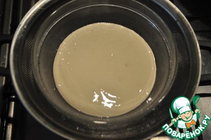 Взбиваем сахар, яичный белок, соду и 2 ст. л остывшего кофе. Ставим на водяную баню, пока смесь не превратится в густое безе.