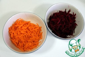 Затем немного подсушить свеклу с помощью бумажного полотенца и добавить к моркови.