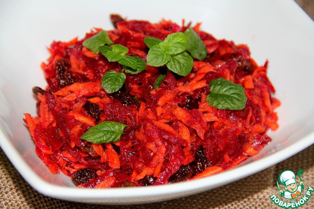 Заливаем этим соусом салат и хорошо перемешиваем, чтобы и свекла, и морковь были покрыты заправкой.